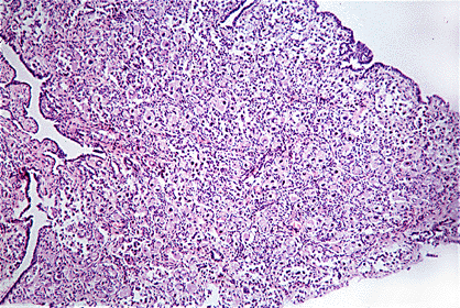 El epitelio germinal (simple, células cuboides) cubre la capa albugínea de tejido conjuntivo. La corteza contiene abundantes oocitos