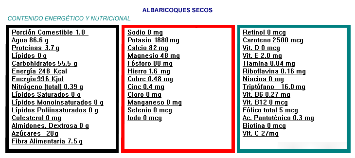 ![]() El contenido en antioxidantes de los orejones es moderado |