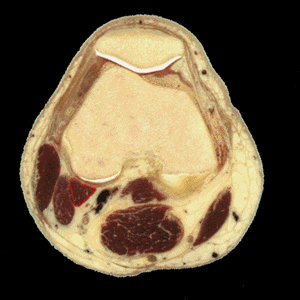 MUSCULO PLANTARDefinici�n: El m�sculo plantar es un m�sculo corto y aplanado de la regi�n posterior de la pierna limitando en su parte externa con el m�sculo gemelo externo y por delante con la c�psula articular.Origen: El m�sculo plantar se origina en la parte popl�tea del f�mur en la parte superior del c�ndilo externo y est� adherido a la c�psula articular Inserci�n: Este m�sculo es relativamente corto - s�lo unos cuantas pulgadas. El m�sculo plantar y su tend�n se extienden oblicuamente desde el lateral hacia el medio entre el m�sculo gemelo y el s�leo. El largo tend�n plantar contin�a distalmente hacia el tend�n de Aquiles insert�ndose en varios sitios (el propio tend�n de Aquiles, directamente en el calc�neo y en retinaculum flexor del tobillo. Inervacion: El m�sculo plantar est� inervado por el nervio tibial. El suministro de sangre se consigue gracias a la arteria tibial posterior. Funci�n: el m�sculo plantar es un flexor menor de la rodilla y un flexor plantar del pie. |