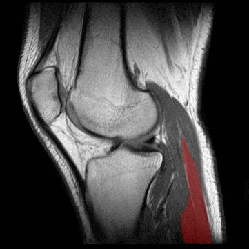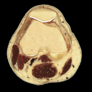 MUSCULO GEMELODefinici�n: los m�sculos gemelos, formados por las cabezas medial y lateral se extienden en la parte syperficial del compartimento posterior de la pantorillaOrigen: Las cabezas medial y latreral del m�sculo gemelo salen de los c�ndilos medial y lateral del f�mur, respectivamente. Las dos cabezas se unen en la parte superior de la pantorilla. Inserci�n: El m�sculo forma un tend�n ancho y plano a nivel de la pantorrilla media. El tend�n soleo se insera en la parte anterior del tend�n del gemelo para formar el tend�n de Aquiles que, a su vez, se inserta en la parte posterior del calc�neo posterior Inervaci�n: El m�sculo gemelo est� inervado por el nervio tibial (S1, S2). El aporte sangu�neo est� asegurado por la arterial posterior tibial artery. Funci�n: El m�sculo gemelo flexiona la pierna, extiende el pie (flexi�n plantar) y es supinador y abductor del mismo. |