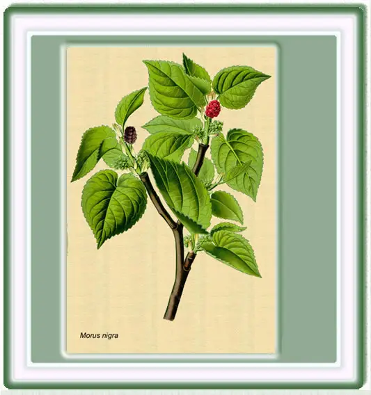 El jarabe de moras negras se ha empleado en forma de gargarismos contra inflamaciones de boca y garganta. La corteza tiene propiedades anti-inflamatorias, mientras que las hojas tienen propiedades astringentes y antidiabéticas, empleándose en faringitis, estomatitis y en pacientes con problemas moderados de hiperglucemia. El extracto de las hojas con diclorometano muestra un potente efecto analgésico en los ratones, siendo las dosis de 300 mg/kg tan efectivas como la indometacina en dosis de 5 mg/kg o la morfina en dosis de 10 mg/kg, El extracto de las ramas y de las raices de la morena contiene varios polifenoles entre ellos la 2,4,2',4'-tetrahidroxichalcona, y otras chalconas que tienen un efecto inhibidor sobre la tirosinasa |