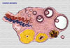 La célula más pequeña, denomina primer cuerpo polar es, esencialmente, material nuclear. La célula más grande, llamada oocito secundario contiene la mayor parte del citoplasma. Cada oocito secundario está rodeado de varias capas de células epiteliales cuboides y columnares llamadas células de la granulosa. La estructura en conjunto recibe el nombre de folículo secundario.