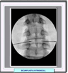 Bajo control radioscópico se introducen en el anillo fibroso del disco protuído, los introductores de los terminales de radiofrecuencia. Estos últimos cuentan en su extremo con un sensor de temperatura distal, que monitoriza la temperatura ofrecida por el electrodo y otro sensor proximal que mide la temperatura del disco en su periferia. Ambos sensores aportan información a una unidad de enfriamiento, que consiste en una bomba peristáltica de agua que envía el flujo necesario de líquido para evitar el sobrecalentamiento del disco, a través de una tubería que se continúa en el interior del electrodo y permite tener una temperatura constante en la punta del mismo, evitando de esa manera daño innecesario al disco.