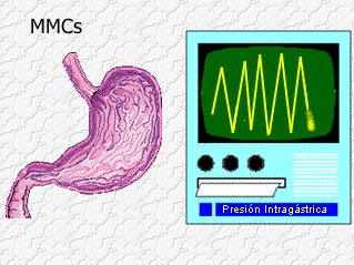 Estos ciclos de actividad motora (también conocidos como MMC (migrating myoelecric complexes) se repiten cada 75-90 minutos y consisten en trenes de ondas contráctiles que se van propagando desde el estómago hasta el ileon distal, de tal manera que cuando un tren de ondas alcanza el íleon, un nuevo tren se inicia en el estómago. |