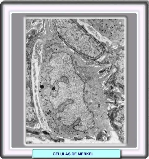 Las células de Merkel representan un tipo de células intraepiteliales de la piel y de la mucosa oral que han sido calificadas de paraneuronas. Las células de Merkel son difíciles de distinguir de otras células de la piel por microscopía óptica aunque son fácilmente discernibles por microscopía electrónica. Se encuentran sobre todo en las proximidades del estrato basal, concentradas cerca de los folículos capilares. La función de las células de Merkel es objeto de controversias. La opinión más generalizada es que son células mecanoreceptoras ya que poseen unas microvellosidades que responden a la distorsión mecánica produciendo la liberación de neurotransmisores por parte de la célula. Se ha sugerido que la célula de Merkel liberaría un sustancia similar al factor de crecimiento neuronal que estimularía el crecimiento de las fibras nerviosas o que suministraria un factor que bloquearía las señales a las mismas