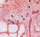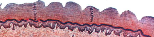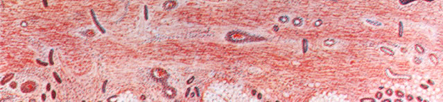 La dermis es el tejido de soporte de la epidermis y de los anexos de la piel. Además, en ella se localizan los vasos sanguíneos, vasos linfáticos y nervios. La dermis está compuesta por fibroblastos, fibrocitos y sus productos extracelulares; colágeno y fibras eslásticas, una matriz constituída por glicosaminoglicanos y un pequeño número de macrófagos, linfocitos y mastocitos.