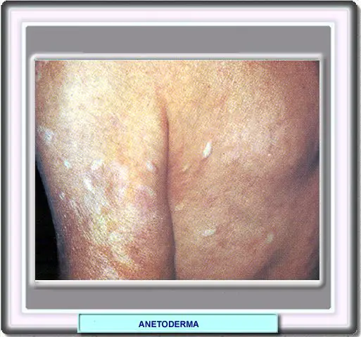 Se conocen otros defectos de la elastina además de la ametodermia. Algunos defectos endocrinos pueden producir cambios del tejido conjuntivo que resultan en una pérdida de la elasticidad de la piel localizada. Más parecidas a la anetodermia son las estrías del embarazo, de la pubertad o de la enfermedad de Cushing. También se conocen casos de laxitud localizada de los párpados después de una dermatitis crónica o recurrente en esta zona, y la laxitud idiopática de los párpados puede ir asociada al síndrome de Ascher o formar parte del proceso de envejecimiento. La penicilinamina es el único fármaco conocido que produce anetodermia. Se cree que este efecto se debe a una interferencia de la penicilamina con la lisil-oxidasa, una enzima dependiente de cobre que es esencial para la fabricación de las fibras de elastina. El deterioro difuso de los tejidos eslásticos, congénito o adquirido se denomina cutis laxa y, a veces, se solapa con el anetoderma |