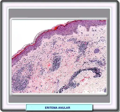 La histología muestra una epidermis normal o con espongiosis y paraqueratosis. En la dermis media se observan profundos infiltrados densos alrededor de los vasos. Ocasionalmente puede ocurrir eosinofilia tanto en la sangre periférica como en los tejidos. En estos casos, se asume que el eritema anular representa la primera manifestación del síndrome hipereosinofílico. En ocasiones de observa una vasculitis leucocitoclástica |