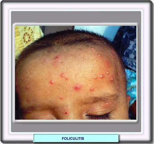En los niños, la enfermedad afecta con mayor frecuencia a la cara, el cuero cabelludo, las nalgas y extremidades. Las lesiones suelen ser indoloras anque pueden ir acompañadas de prurito. El diagnóstico diferencial de la foliculitis pediátrica incluye una infección por Candida que se confimará por cultivo. También hay que considerar los exantemas acneiformes medicamentosos, el acné cosmético y la foliculitis pustulosa eosinofílica (síndrome de Ofuji) |