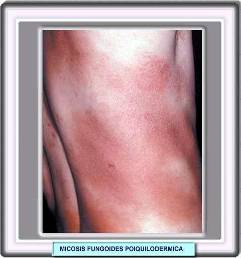 Algunos pacientes con micosis fungoides típica pueden desarrollar lesiones poiquilodérmicas, que se caracterizan por zonas hipo- e hiperpigmentadas, atrofia y telangiectasia. Estas lesiones se desarrollan lentamente en los lugares previamente atacados, preferentemente en las áreas en las que existe rozamiento con la ropa.