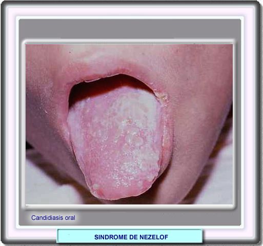 En el 50% de los casos se presenta una candidiasis oral y a menudo se producen infecciones víricas por virus oportunistas como el P. carinii. Los pacientes con síndrome de Nezelof muestran linfopenia, si bien el resto de los linfocitos son normales. Existe un déficit de células T, pero los niveles de inmunoglobulinas son normales. Algunos de los enfermos con el síndrome de Nezelof muestran una deficiencia de purina nucleósido fosforilasa, un desorden autosómico recesivo debido a la ausencia de la enzima que degrada las purinas. Esta enzima viene codificada por un gen situado en 14q13.1