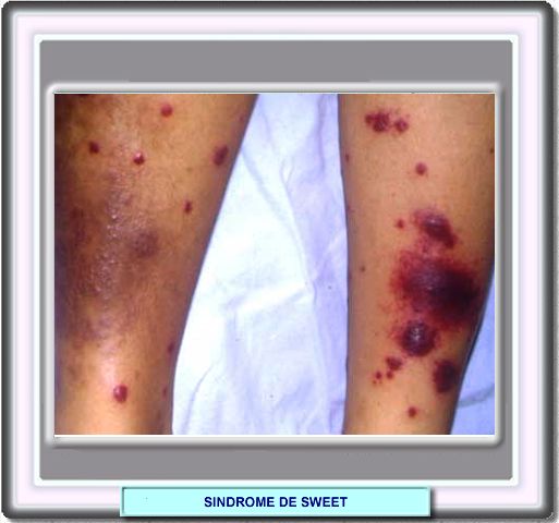 Las lesiones se localizan preferentemente en la cara, cuello, tronco y extremidades superiores, si bien las extremidades inferiores también pueden verse afectadas. En las piernas, la enfermedad puede simular una paniculitis tal como un eritema nodoso. Los síntomas sistémicos que acompañan a la erupción de la piel son fiebre y leucocitosis periférica. La fiebre suele preceder la erupción, pero puede estar presente durante todo el curso de la enfermedad. Adicionalmente pueden darse numerosas maifestaciones extracutáneas como conjuntivitis, meningitis aséptica, proteinuria y hematuria e infiltrados pulmonares negativos en los cultivos pero visibles en las radiografías de tórax.