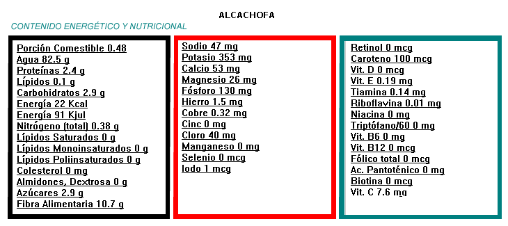 | Además de los índices anteriores, muy favorables, las alcachofas constituyen un ingrediente muy conveniente en las dietas de adelgazamiento y para los diabéticos. Se admite que sus hojas tienen propiedades hipoglucemiantes e hipocolesterolemiantes gracias a su contenido en flavonoides | |||||||||||||||||||||||||||||||||||||||||