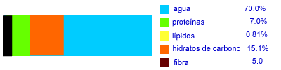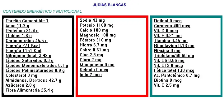 ![]() Laa judias contienen una cantidad apreciable de fibra alimentaria. Obsérvese que la cifra indicada es para 100 g- |