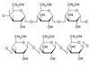Fibra: se define con el término de "fibra" el material indigestible que acompaña a los alimentos y que se elimina sin alterar en las heces. Muchas personas asocian este término al que se utiliza en los medios textiles (##) y consideran como fibras algunos elementos (como la celulosa presente en muchas frutas o verduras) sin tener en cuenta que las fibras importantes desde el punto de vista dietético son las fibras solubles. La fibra está formada por hidratos de carbono que no son digeribles y que son eliminados como tal. El hecho de que algunos hidratos de carbono sean digeribles y otros no se debe a la naturaleza de los enlaces glicosídicos entre las moléculas de monosacáridos que forman el hidrato de carbono y a la presencia en el tracto digestivo de las enzimas responsables de romperlos. Así, el almidón y la celulosa están compuestos por el mismo monosacárido que se repite n veces. Sin embargo en el almidón, el enlace glicosídico es a-1,4-glucosídico, mientras que la celulosa es b-1,4-glucosídico (*). El hombre carece de las enzimas capaces de romper este último y no puede digerir la celulosa, mientras que los herbívoros pueden asimilar tanto el almidón como la celulosa. Las fibras han adquirido en las últimas décadas un gran interés por sus efectos en el intestino, en particular en el colon: