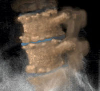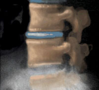 DIAGNOSTICO Al visitar al médico este le hará una historia clínica mediante una serie de preguntas acerca de su dolor de espalda. Seguidamente, le hará un reconocimiento físico y probablemente le ordenará un examen radiológico. Las radiografías permiten observar el grado de degeneración de los discos intervertebrales como puede observarse en el ejemplo que muestra dos radiografías del mismo paciente tomadas con un intervalo de 20 años. Probablemente su médico también le ordenará un estudio de resonancia magnética nuclear, una técnica que utiliza ondas magnéticas para obtener imágenes en lugar de radiaciones electromagnéticas como ocurre en los rayos X. Esta técnica no requiere de la utilización de inyecciones de medios de contraste. La RMN permite, además, la obtención de muchas imágenes axiales y longitudinales tomadas a intervalos de unos pocos milímetros en las que se pueden ver huesos, nervios y discos intervertebrales . Otra técnica empleada para el diagnóstico del dolor de espalda es la tomografía computarizada que permite la obtención de imágenes axiales de cortes de la espina dorsal. Esta técnica muestra mejor imágenes de los huesos que la resonancia magnética nuclear y se practica cuando se sospecha que hay lesiones óseas. La tomografía computarizada se suele combinar con el mielograma que consiste en inyectar un medio de contraste en el canal espinal y ver por rayos X si existen obstrucciones o alteraciones que puedan presionar sobre el nervio. Una variante del mielograma es el discograma en el que un colorante especial se inyecta en el nucleus pulposus del disco intervertebral. Si el dolor producido por la inyección es similar a su dolor de espalda es muy probable que su problema se deba a una lesión del disco intervertebral. Las radiografías y las tomografías computarizadas también pueden mostrar cualquier fisura o lesión del disco intervertebral. La electromiografía utiliza señales eléctricas proporcionadas mediante electrodos insertados en las raíces nerviosas para determinar la correcta función de los nervios que innervan las piernas. Otras posibles causas del dolor de espalda no están relacionadas con la degeneración de la espina dorsal. Entre estas hay que destacar el aneurisma de aorta, problemas renales y la úlcera de estómago. Su médico decidirá si son necesarias pruebas específicas para descartar estas causas. |