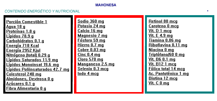 ![]() La salsa mahonesa es pobre en antioxidantes |