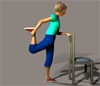 Estiramiento de las piernas: De pie, en posición de reposo y agarrándose a una silla comience a balancearse. Doble una pierna por detrás y agárrese el tobillo. Sostenga esa posición durante 15 segundos. Luego repita el ejercicio con la otra pierna |