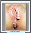 Los condilomas acuminados son papilomas verrucosos que se asientan en la parte posterior de los labios menores |