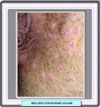 Molluscum contagiosum:una infección causada por un virus que motiva pápulas blanquecinas, con depresión central, como perlitas, de las que por presión sale un material sebáceo |