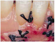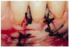 Los bordes del colgajo se suturan con puntos sencillos. Aspecto final de la