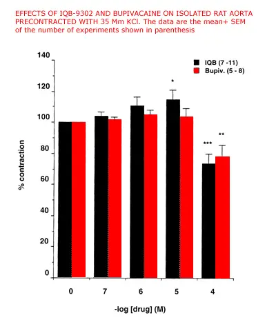 | Rat hemodynamics | Similar to bupivacaine (slight and non significant higher increase in BP) | Similar decrease in HR at 3 mg/kg and higher |