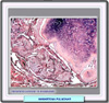 hamartomas gigantes del pulmón. Se presentan Los hamartomas se presentan en el 0.25% de la población. Entre el 4 y el 14 % de todas las lesiones pulmonares en forma de moneda son hamartomas. Los varones son más afectados que las mujeres y las lesiones suelen aparecer entre la 5ª y 6ª décadas de la vida siendo más propensos los fumadores a padecer este tipo de lesión En el 30 % de lo casos se observan en las radiografías de rayos X de tórax el patrón característico de calcificaciones en palomitas de maíz (*). Algunos autores creen que los hamartomas se deben a una malformación congénita del primordio bronquial desplazado, una hiperplasia de tejido pulmonar normal, una neoplasia cartilaginosa benigna o una respuesta inflamatoria. La mayoría de los hamartomas pulmonares (90%) son asintomáticos, especialmente cuando son periféricos. Las lesiones centrales o endobronquiales pueden provocar tos, hemoptisis, expectoración y otros síntomas de obstrucción bronquial. Las lesiones periféricas no muestran ninguna predilección hacia un lóbulo en particular El diagnóstico del hamartoma pulmonar es muy sencillo por su aspecto radiográfico inconfundible de nódulo solitario bien definido (*) . El aspecto en forma de palomitas de maíz es patognomónico para esta lesión. En el 15% de los casos, el hamartoma pulmonar está calcificado. Los topografías computarizadas (*) muestran un aspecto parecido a las radiografías aunque en ellas se pueden observar mejor las calcificaciones. El diagnóstico histológico (*) puede conseguir mediante una aspiración con una aguja fina de las lesiones periféricas y control fluoroscópico. Si se observan fragmentos fibromixoides o cartilaginosos el diagnóstico se confirma Los hamartomas muestran un crecimiento lento, a razón de unos 3 mm/año aunque en algunos casos se han descrito crecimientos más rápidos. En este caso, un hamartoma pulmonar puede ser difícilmente diferenciado de una carcinoma broncogénico. Si, por otra parte, el hamartoma no muestra calcificaciones o grasa, se amplían considerablemente los diagnósticos diferenciales. Los hamartomas centrales endobronquiales muestran imágenes idénticas a los carcinomas. Aunque es poco probable que un hamartoma pulmonar degenere a una neoplasia, existen referencias en la literatura médica que indican que los enfermos con un hamartoma son más propensos a desarrollar un cáncer pulmonar. El tratamiento de los hamartomas sintomáticos o de crecimiento rápido es la cirugía conservadora en cuña o enucleación de las lesiones que puede ser necesaria por el tamaño y la localización del hamartoma y por la presencia de neumonía obstructiva. Las lesiones que muestran un mínimo crecimiento y no producen síntomas son tratadas de forma conservadora. Otra variante de tratamiento