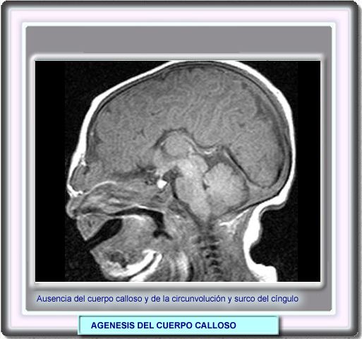La formación del cuerpo calloso tiene lugar entre las semanas 8 y 20 de la gestación. La agenesia del cuerpo calloso está asociada a otras anormalidades cerebrales entre las que se incluyen: