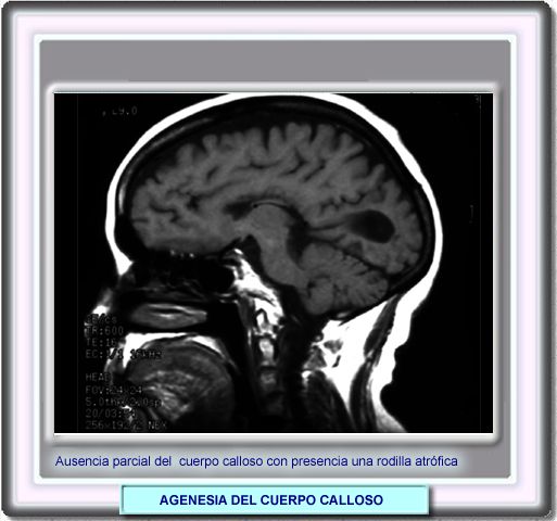 La agenesia (o disgenesia) del cuerpo calloso suelen ser diagnosticados durante los dos primeros años de la vida. Puede ser una grave condición de la infancia o una enfermedad leve en la adolescencia y en los adultos jóvenes e incluso puede ser asintomática detectándose sólo accidentalmente. Los primeros síntomas de la agenesia del cuerpo calloso son, por regla general, convulsiones, seguidas de problemas en la alimentación, retraso en mantener la cabeza erecta, sentarse y caminar. Las convulsiones pueden ser producidas por un desorden bastante común, los espasmos infantiles, a menudo asociados con la agenesia del cuerpo calloso. Otros síntomas que acompañan la agenesia del cuerpo calloso son retrasos mental y del desarrollo físico, ausencia de coordinación entre la vista y las manos y alteraciones visuales. También puede presentarse hidrocefalia En los casos menos graves, pueden detectarse cefaleas, lenguaje repetitivo y convulsiones que a veces no aparecen durante años. Las niñas padecen un síndrome específico sumado a la agenesia del cuerpo calloso, el síndrome de Aicardi, caracterizado por un profundo retraso mental y lagunas corioretinales. |