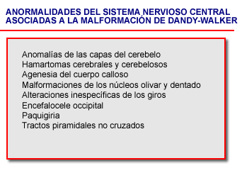 La malformación de Dandy-Walker de debe a mutaciones en el cromosoma X en el locus Xq25-q27. Este desorden forma parte de otras muchas enfermedades del desarrollo del sistema nervioso central y también se encuentra asociada a otras anormalidades
