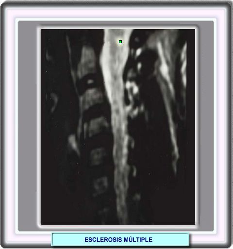 Esclerosis múltiple en la médula espinal La médula espinal puede ser uno de los primeros sitios afectados por la esclerosis múltiple. Las placas ocurren con preferencia en el cordón dorsolateral sin respetar fronteras entre la materia blanca y la materia gris. Al comienzo, se observa una predilección por el cordón cervical. Las mujeres suelen ser más afectadas que los hombres Los hallazgos más comunes por resonancia en T2 son lesiones intramedulares hiperintensas, en particular si se ha idenficado atrofia focal o generalizada del cordón en T1. Las lesiones agudas tienen el aspecto de masas y se resaltan con el uso de un contraste