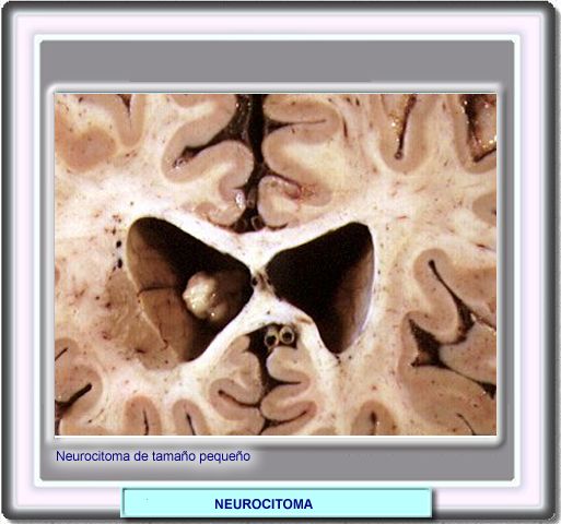 Los neurocitomas son muy raros antes de los 10 años, presentándose más del 60% de los casos entre los 20 y 40 años. Aproximadamente el 20% ocurre en sujetos jóvenes de 10 a 20 años En la mayor parte de los casos, se trata de un tumor de desarrollo corto (los síntomas clinicos aparecen en menos de 8 meses), pero en algunos casos, los síntomas pueden estar presentes hasta 3 años y en algunos casos, tumores de pequeño tamaño han descubiertos accidentalmente. Macroscópicamente, el tumor está bien circunscrito desmacándose de los tejidos que le rodean. Aproximadamente un 40% de los mismos tienen una textura arenosa debida a numerosas microcalcificaciones