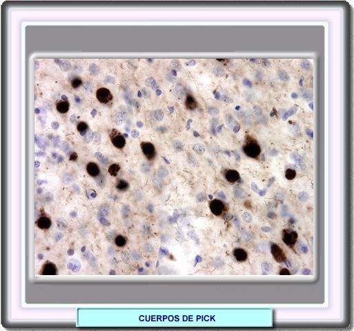 La proteína tau es uno de los principales componentes de los cuerpos de Pick, pero otros muchos anticuerpos también tiñen estas inclusiones incluyendo los anticuerpos a la ubiquitina, a-sinucleína y apolipoproteína E.
