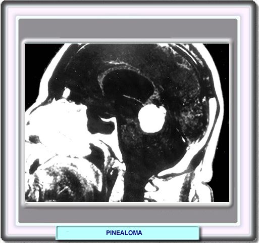 Los síntomas y signos neurológicos se deben a un hidrocéfalo obstructivo y afectación del tracto ocular. Los síntomas más importantes son cefaleas, naúseas y vómitos, letargia y diplopía. La prognosis de estos tumores depende de su histología y del tamaño en el momentpo del diagnóstico. Los pacientes con teratomas maduros responden mejor a la cirugía, mientras que los germinomas son tratados mejor mediante radioterapia.