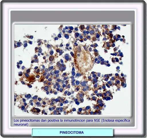 La enolasa específica neuronal (NSE) es una enzima neuronal que cataliza la interconversión de 2-fosfoglicerato y de fosfopiruvato. Su inmunoreactividad es considerada como evidencia de diferenciación citogénetica neuronal y está correlacionada con la maduración neuronal. La positividad a NSE se utiliza para identificar líneas celulares embriónicas Los pineocitomas dan positiva la reacción inmunoquímica a la NSE |
