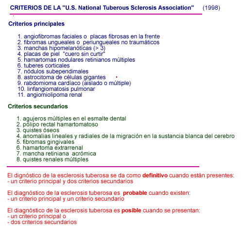 los criterios de diagnóstico de la esclerosis tuberosa.