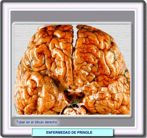 Una de las las características típicas de la esclerosis tuberosa es la aparición de tuberes corticales que aparecen como masas blandas de color blanco.