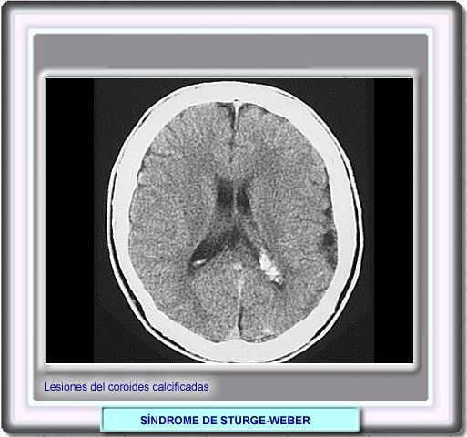 Algunos pacientes muestran una lesiones anchas y calcificadas en el plexo coroides en las imagenes en T2. La hiperintensidad observada puede ser debida a un edema o también a una ralentazación de la circulación venosa