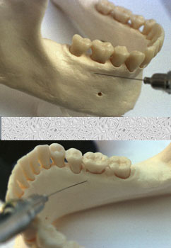 aguja se colaca en el surco adyacente a los ápices de los dientes