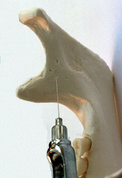 se practica en el surco mandibular por encima del foramen aproximadamente