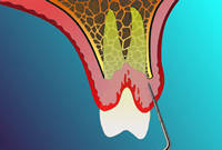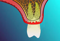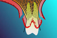 La cirugía ósea permite preparar el lecho óseo para la adaptación del colgajo en una posición más apical respecto de su posición anterior. Quedará al descubierto una parte de la superficie radicular, lo que permitirá un mejor control de la placa |