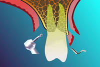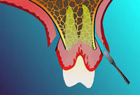 Después de la eliminación del rodete con la azada y del raspado y alisado radicular se lleva a cabo el remodelado del lecho óseo con una fresa rotativa o una lima ósea manual |